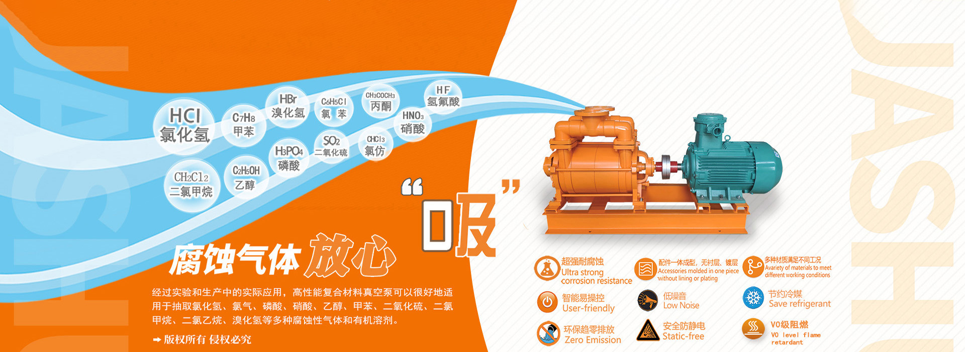 淄博華舜耐腐蝕真空泵有限公司主要生產(chǎn)各種型號和規(guī)格的水噴射泵、耐酸泵、耐酸真空泵等產(chǎn)品,是一家集科研開發(fā)、設計咨詢、生產(chǎn)、銷售、服務于一體,利用新型高性能復合材料,專業(yè)生產(chǎn)耐腐蝕液環(huán)真空泵的國家高新技術企業(yè), 坐落于“中國泵業(yè)名城”---山東省淄博市博山區(qū),公司通過了ISO9001質量體系認證。公司獨立研發(fā)的具有多項自主知識產(chǎn)權的專利產(chǎn)品-耐腐蝕系列水環(huán)式真空泵,通過了省級科技成果鑒定,處于“國際先進水平”。 產(chǎn)品過流部件采用三大系列高性能復合材料(HS-V130、HS-V110、HS-V80)一體成型,耐腐蝕范圍廣、無襯層不脫落、節(jié)能效率高、運行可靠、環(huán)保節(jié)水、 體積小、重量輕、使用壽命長等特點。